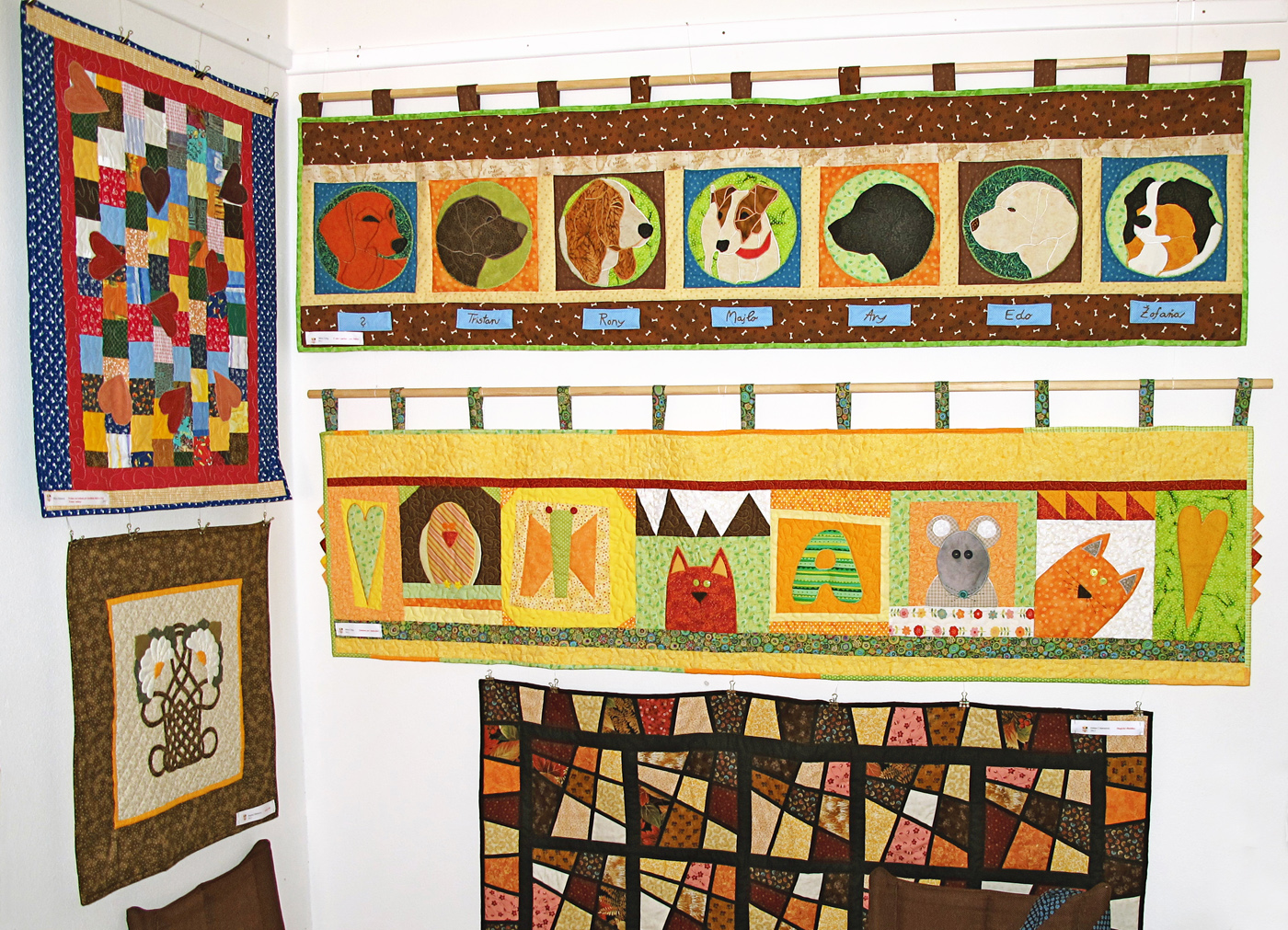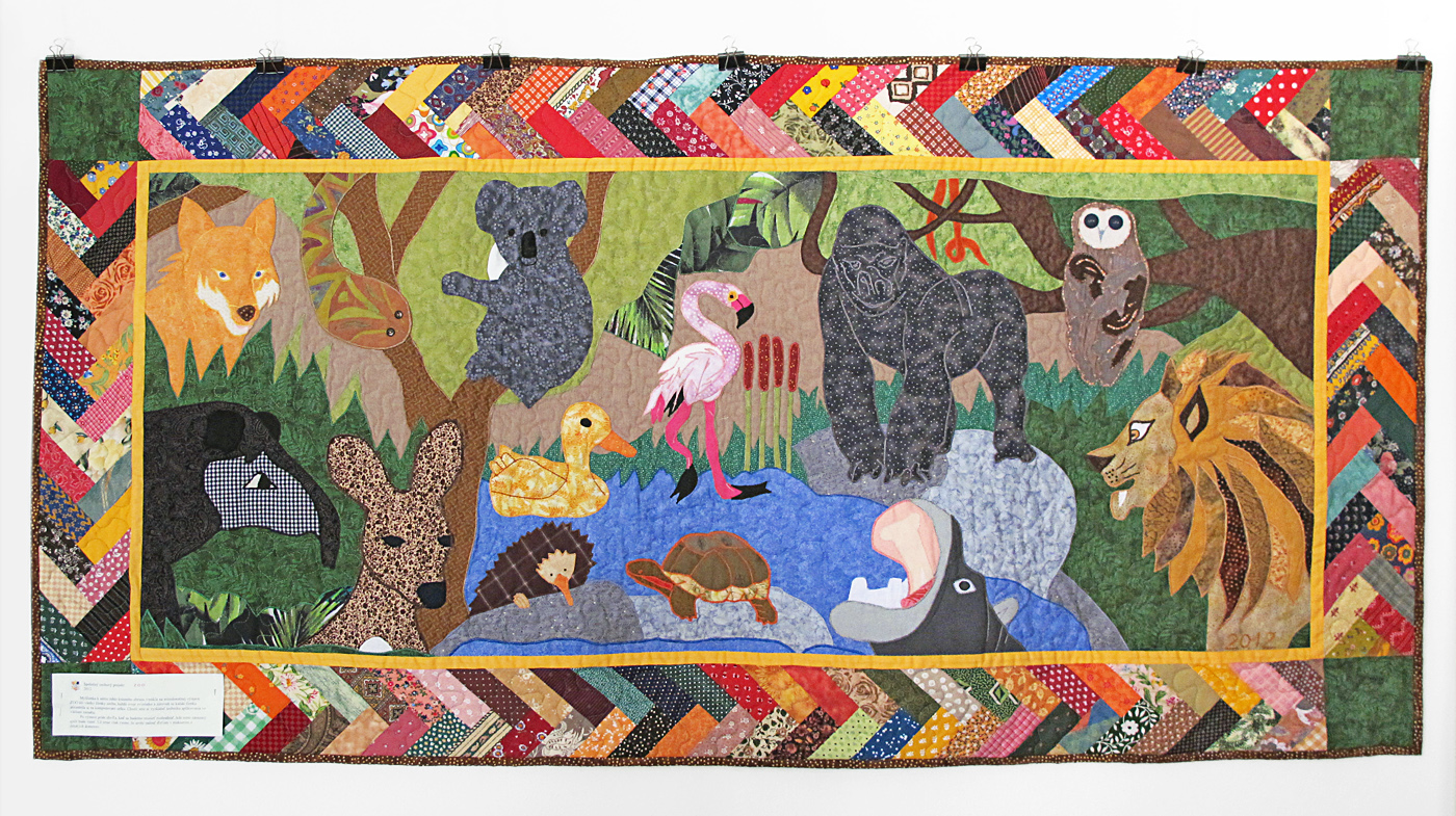 Na minuloročnej výstave sme si „vymysleli“ ďalší zo spoločných projektov – ZOO. Každá členka cechu ušila jedno zvieratko. Na spoločných stretnutiach sme potom zviertká zapracovali do nástenného quiltu.