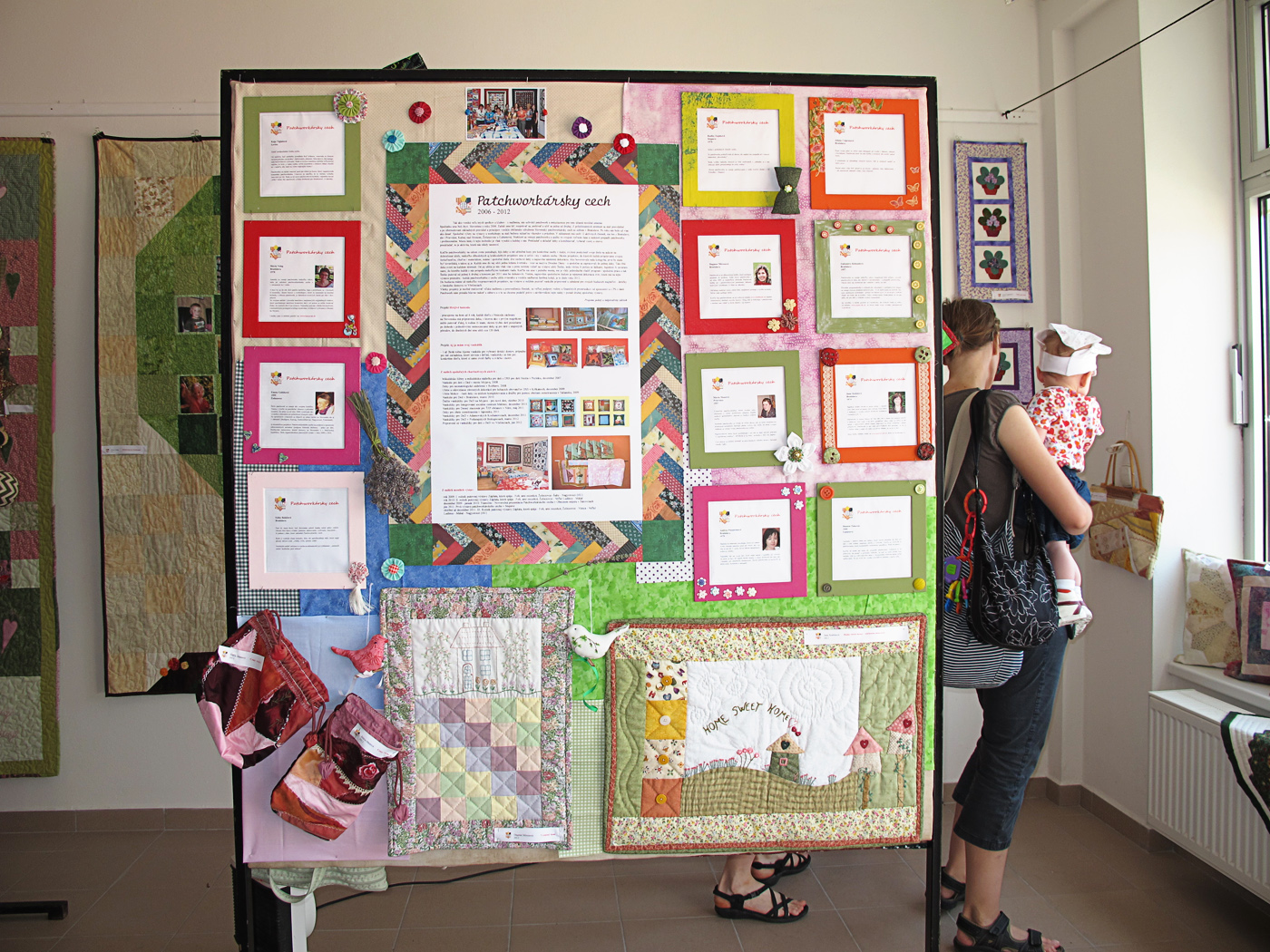 Pri vchode bol umiestnený informačný panel, kde sa návštevníci mohli zoznámiť s cieľmi a projektami Patchworkárskeho cechu. Zároveň sa im v jednotlivých profiloch predstavili jeho členky.