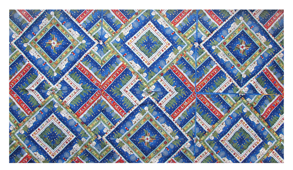 Tu už máme poukladanú budúcu deku. Jej majiteľka je už s rozložením dielikov spokojná, o pár minút ich zošije. A potom – už môžu prísť Vianoce 🙂 .